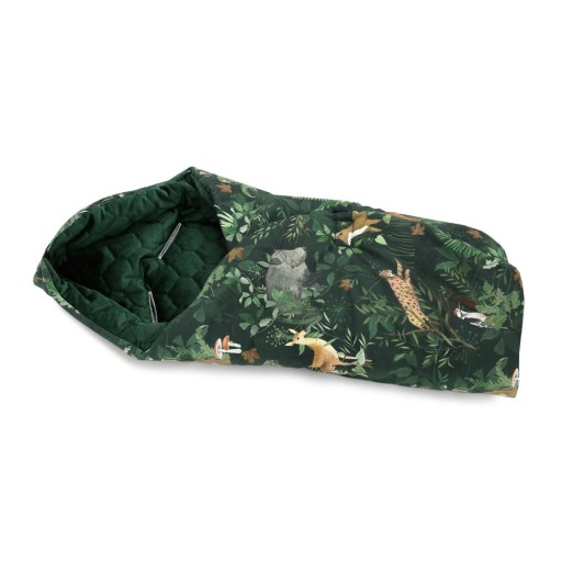Otulacz do fotelika wyposażony jest w otwory na trzy i pięciopunktowe pasy bezpieczeństwa. Długie pionowe otwory zabezpieczone rzepem pomogą dopasować kocyk do każdego fotelika. Zapinany jest na szeroki rzep z dużym obszarem regulacji, a w górnej części posiada zapinany kapturek, który otula i chroni główkę.