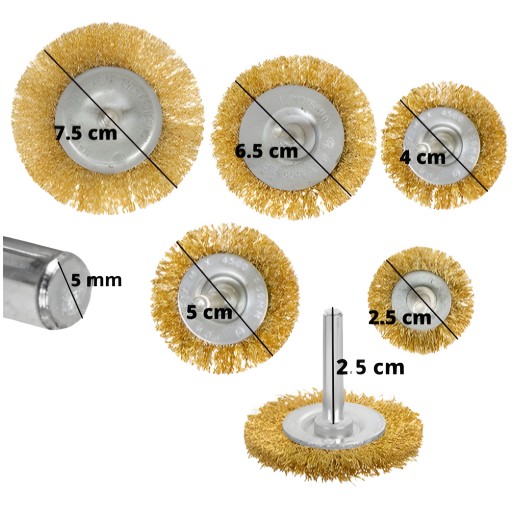 - Średnice szczotek: 7,5 cm / 6 cm / 5 cm / 5 cm / 3 cm