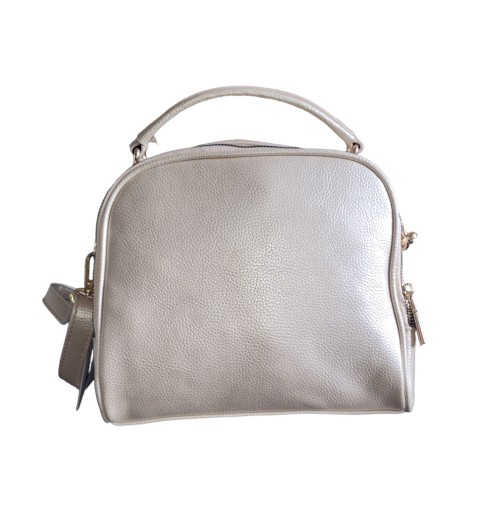 Torebka typu kuferek. Wykonana ze skóry ekologicznej. Zapinana na zamek. Jedna komora, w środku trzy kieszonki w tym dwie zapinane na zamek. Na zewnątrz kieszonka na zamek.