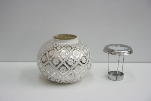 Lampion biało-srebrny,zdobiony kwiatkami.