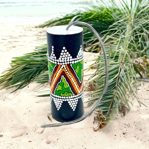 Instrument imituje odgłos grzmotu burzy.Zależnie od mocy uderzenia, potrząśnięcia można regulować moc, intensywność dźwięku.Ich unikalność polega na zdobieniu ich powierzchni za pomocą techniki dot painting. Ta metoda polega na malowaniu małych kropeczek, tworzących interesujące wzory i motywy. Każdy instrument jest inaczej ręcznie zdobiony, co nadaje mu artystycznego uroku .
