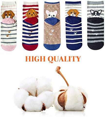 Zawartość przesyłki: Każdy zestaw zawiera 5 par skarpet ze zwierzętami. Te damskie skarpety mają urocze wzory kotów lub szczeniaków. Ten wzór sprawia, że skarpety wyglądają uroczo, hojnie i prosto, można je łączyć z różnymi stylami ubioru.