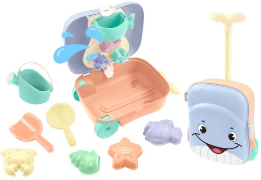 Który maluch, w ciepłe dni, nie lubi spędzać czasu na świeżym powietrzu a szczególnie na plaży czy w piaskownicy? Zabawa w piasku i wodzie to ulubione zajęcie wszystkich dzieci. Brzdące z zaangażowaniem budują zamki z piasku, stawiają babki, robią ciasteczka w foremkach, kopią tunele. We wszystkich tych czynnościach pomoże im ten rewelacyjny zestaw do piasku w walizce.