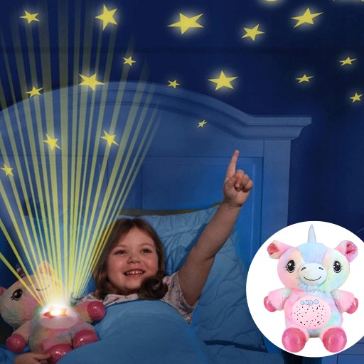 JEDNOROŻEC ZABAWKA PLUSZOWA Z PROJEKTOREM GWIAZD LAMPKA POZYTYWKA MELODIE