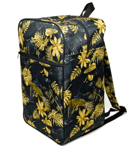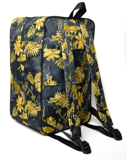 Z tyłu plecaka znajdują się szelki, które pozwalają nosić bagaż podręczny swobodnie na plecach. Plecak wykony jest z miękkiego materiału po wypakowaniu bagaży bez problemu można go złożyć na płasko dzięki czemu zajmuje mało miejsca.