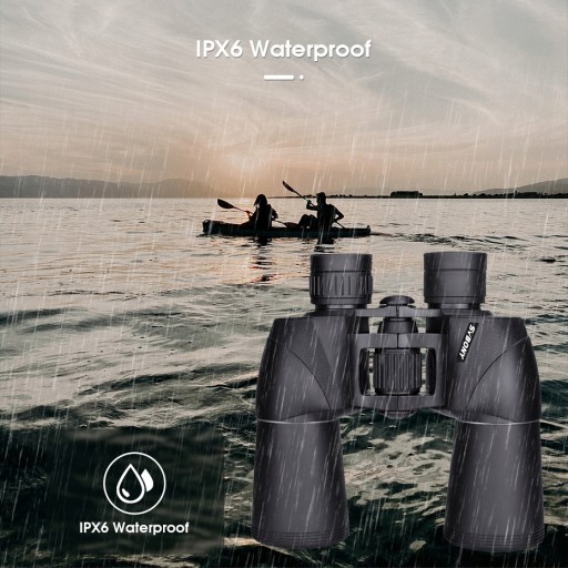 Lornetka jest wodoodporna na poziomie IPX6 i może być używana w niektórych wodnych warunkach, takich jak używanie jej w kajaku, na pokładzie łodzi lub na szlaku w deszczu.