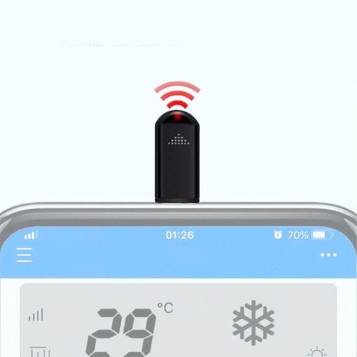 Cecha: 1. Wygodny w użyciu: Z łatwością steruj urządzeniami elektronicznymi za pomocą pilota na podczerwień zaprojektowanego specjalnie dla smartfonów. Używany z aplikacją, plug and play.