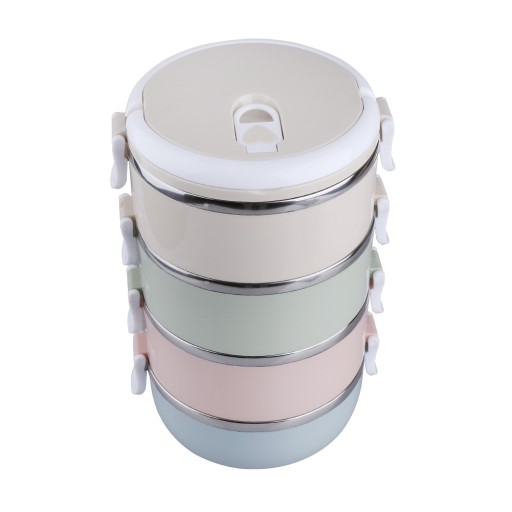 Kompaktowy 4-poziomowy projekt, możesz go użyć do przechowywania większej ilości żywności. Specjalnie zaprojektowany dla Ciebie w podróży. Pokrywa z gumową uszczelką do transportu wody, szczelna.