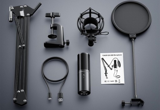 НАБОР КОНДЕНСАТОРНОГО USB-МИКРОФОНА TONOR Q9 + РЕГУЛИРУЕМЫЙ РУЧКА PLUG&PLAY
