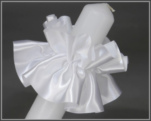Komplet komunijny w składzie: okapnik na świecę do komunii oraz torebka z perełkową rączką wykonana z satyny ślubnej pierwszego gatunku. Komplet można samodzielnie ozdobić według własnego gustu lub kupić na pozostałych aukcjach wybrany zestaw do takiej dekoracji.