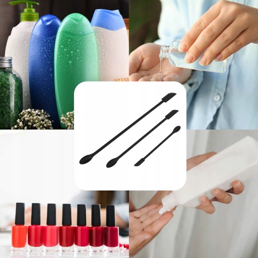 Funkcja:1. Dwustronnie zakrzywiona konstrukcja: silikonowa mini szpatułka ma wąską główkę i długi uchwyt ułatwiający chwyt, a dwustronnie zakrzywiona konstrukcja pozwala jej dostać się głęboko do butelki bez marnowania ostatniej kropli produktu do pielęgnacji skóry, którego chcesz użyć.