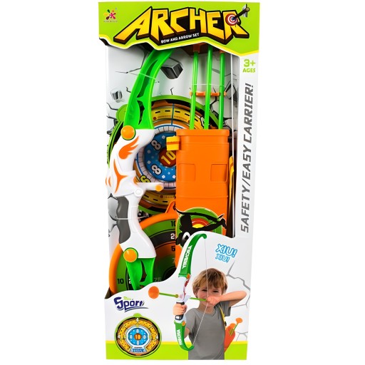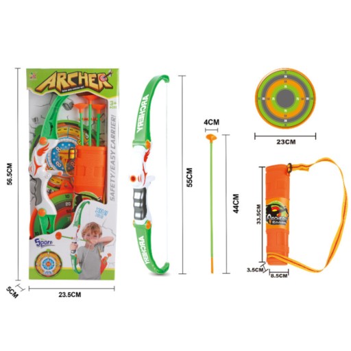 Zestaw Łuczniczy Dla Dzieci Łuk 3 Strzały Z Przyssawkami Tarcza Kołczan