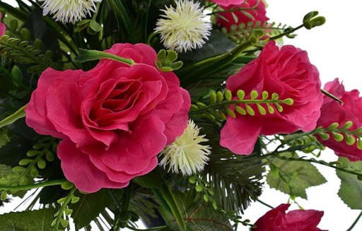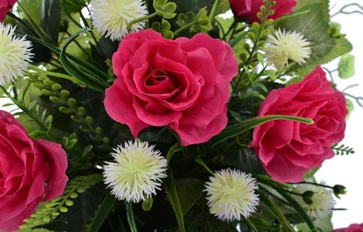 Wkład do wazonu na cmentarz z donicą sztuczne kwiaty róż z dodatkami - 60 cm