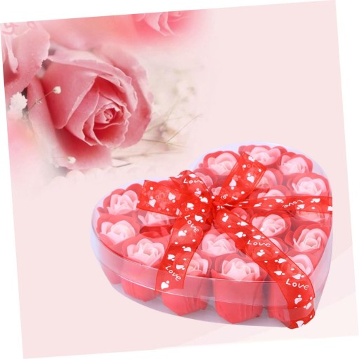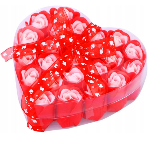 - ➡️ ozdobne pudełko w kształcie serca zawierające 24 szt. mydlanych róż