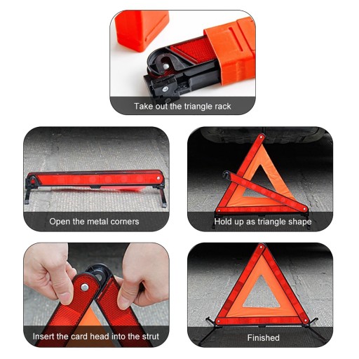 The emergency triangle sign can be folded. Perfect for every car, truck, motorcycle.