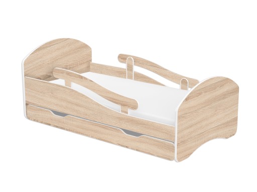 Elementem wyróżniającym są zaokrąglone barierki, dzięki czemu to rozwiązanie pozwala osiągnąć wysoki poziom bezpieczeństwa. Barierki można zdejmować w ciągu dnia na czas zabawy i zakładać z powrotem na noc.