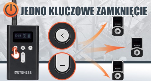 - Prosta obsługa; wyłącz wszystkie odbiorniki jednym przyciskiem; bez skomplikowanych operacji; nadaje się do dużych okazji, takich jak przewodnicy wycieczek i tłumaczenia konferencyjne