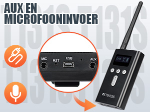 - Wejście AUX i mikrofonu:Nadajnik obsługujący wejście AUX 3,5 mm, które można podłączyć do MP3, komputera.