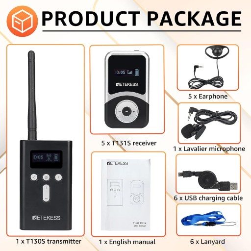Retekess T130S Ulepszony System Przewodnika Turystycznego, 49-Kanałowy Przenośny Bezprzewodowy System Audio, 100-metrowy System Tłumaczenia Językowego dla Turystyki, Fabryki, Konferencji, Kościoła