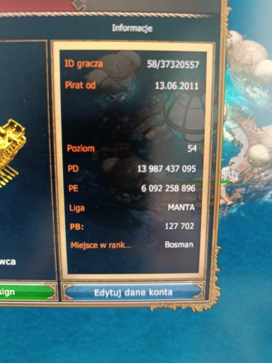 Witam Mam do sprzedania czas poświęcony na rozwinięcie konta w popularnej grze pirackiej Seafight. Konto jest własnością firmy Bigppoint. Jest to konto na serwerze polska 1 54 lev mnóstwo desingow z różnych eventów. Sporo kul ,pereł pergaminów. W razie pytań lub więcej zdjęć proszę o info
