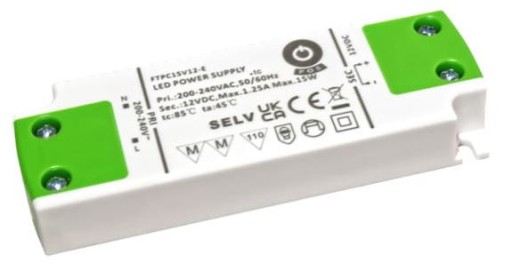 Napięcie wyj: 12V; Prąd wyj: 1.25A; Moc: 15W; Wymiary: 103 x 35.5 x 16mm (dł. x szer. x wys.). Zasilacz stałonapięciowy m.in o cechach: - Napięcie wej.: 180-264Vac - Charakterystyka obciążalności w zależności od napięcia wejściowego; - Częstotliwość: 47-63Hz; - Europejski zakres wartości napięcia wejściowego; - Zabezpieczenia: przeciążeniowe / nadnapięciowe / zwarciowe; - Chłodzenie swobodnym obiegiem powietrza; - Zgodność z międzynarodowymi normami oświetleniowymi.