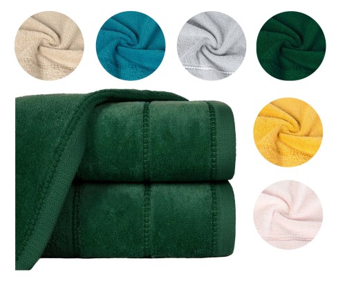 To praktyczny i piękny dodatek pasujący do każdej łazienki. Jednolite barwy ręczników podkreślone miękką welurową bordiurą. Wysoka gramatura sprawia, że ręcznik jest puszysty, dzięki czemu szybko wchłania wodę, delikatnie i szybko osuszając mokre ciało po kąpieli.