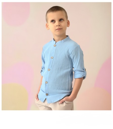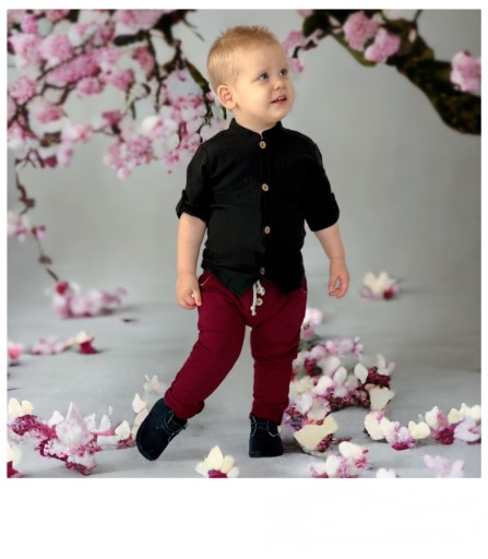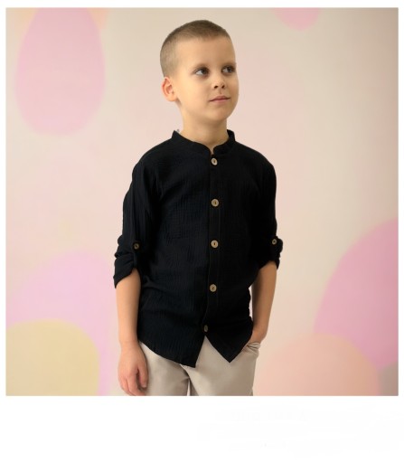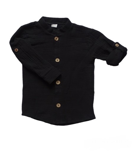 140 черная муслиновая рубашка ПОЛЬША, застегнутая на пуговицы