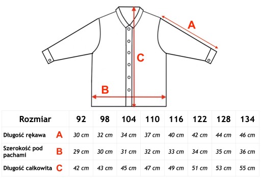 DOSTĘPNE ROZMIARY 68-158