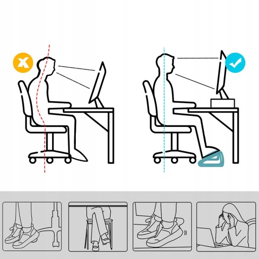 - Ten podnóżek biurka może również pomóc skorygować słabą postawę siedzącą.