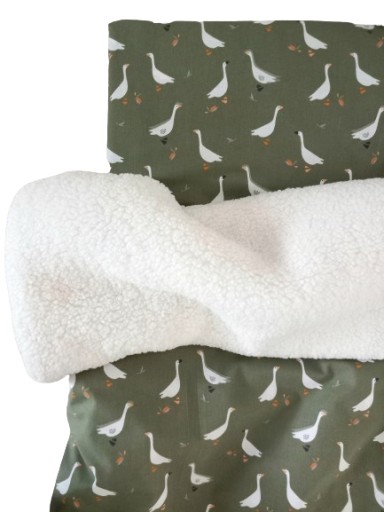 Z jednej strony 100% bawełna w różnych wzorach tkanin do wyboru. Z drugiej strony materiał baranek.