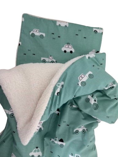 Dwustronny kocyk oraz podusia idealnie sprawdzi się do wózka maluszka podczas chłodnych a nawet mroźnych zimowych dni!