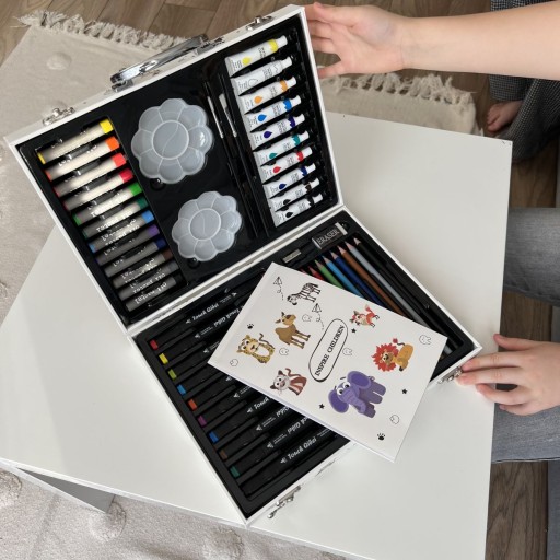 Niezwykły zestaw artystyczny składający się z 68 różnorodnych elementów, dzięki któremu maluch ma okazję wyrazić siebie, rozwijać umiejętności artystyczne i stworzyć niezapomniane dzieła sztuki.
