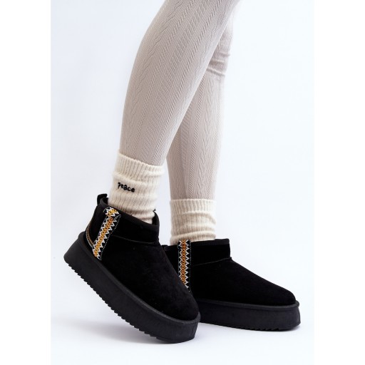 Śniegowce Na Platformie Ze Wzorem Czarne
