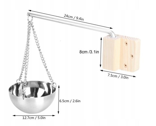 Specyfikacja: Stan: 100% nowy! Typ artykułu: Akcesoria do sauny Materiał: świerk, stal nierdzewna Waga: Ok. 334g / 11,8 uncji Rozmiar: Średnica zewnętrzna miski: Ok. 12,7 cm / 5,0 cali Wysokość: Ok. 6,5 cm / 2,6 cala Kij: Ok. 24 cm / 9,4 cala Płyta drewniana: Ok. 7,5 x 8 cm / 3,0 x 3,1 cala