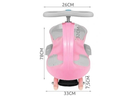 Kółka wykonane zostały z kauczuku oraz posiadają diody LED, są ciche oraz nie rysują podłogi, dlatego dziecko może poruszać się jeżdzikiem również w domu.