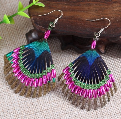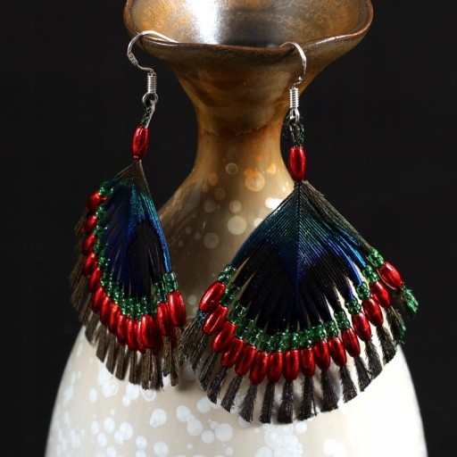 Nie zdziw się, gdy dowiesz się, że pawie pióra w tych kolczykach nie są wyskubane z naszych pawi, są one zbierane i sortowane po tym, jak opadły naturalnie, sterylizowane, a następnie starannie wykonane przez rzemieślników.