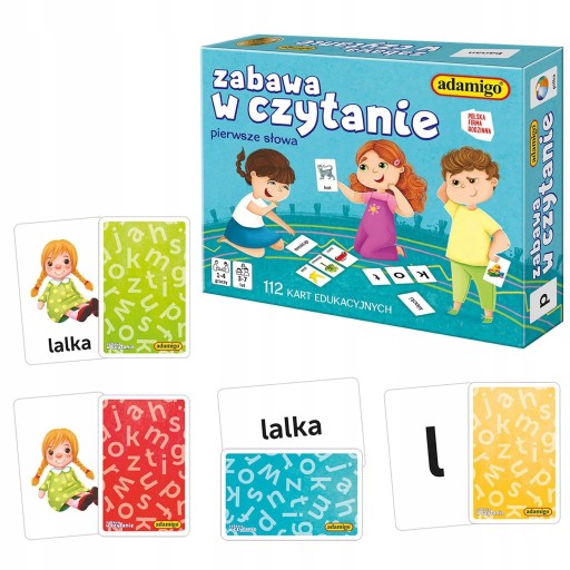 Zabawa w czytanie - karty to mini gra z przejrzystymi zasadami, która wprowadzi dziecko w świat samodzielnego czytania i rozpoznawania liter. Przystępna forma i różne poziomy trudności pozwolą dopasować rozgrywkę do umiejętności dziecka!