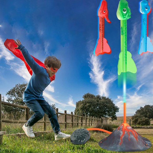 🌋 - 【Zabawna rakieta z dinozaurem】: Ta wspaniała rakieta z dinozaurem zawiera trzy rakiety w kształcie dinozaurów, a także starter wulkaniczny i kopalną pompę nożną. Biegaj, skacz, rzucaj! Dzieci po prostu naciskają stopą na pompę, aby rakieta szybko wzniosła się w niebo. 100% dziecięcej energii gwarantuje, że dzieci będą mogły w pełni cieszyć się zabawą.