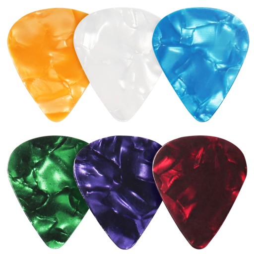 Losowe kolory, 6 kostek do gitary w różnych kolorach, grubość 0,71 mm, wysoka jakość w jasnych kolorach, zawsze odpowiedni kolor dla Twojej gitary.