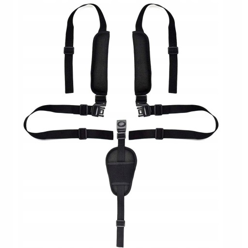1 szt. 5-punktowych pasków uprzęży z poduszkami na ramiona i podkładką ochronną, możesz nacisnąć centralny przycisk, aby zmienić styl 3-punktowy lub 2-punktowy uprząż dla zaspokojenia różnych potrzeb.