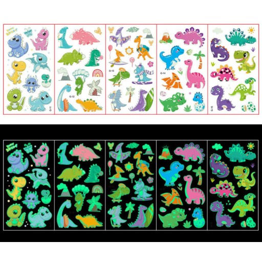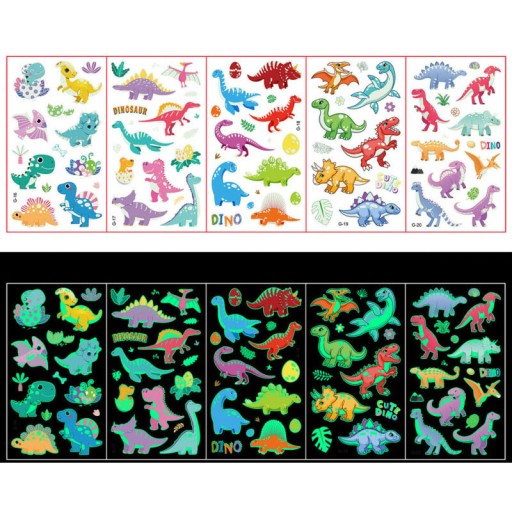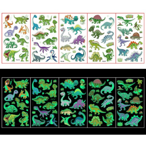 Zestaw zawiera 20 szt. różnorodnych arkuszy z pięknymi świecącymi w ciemności tatuażami dla swoich Pociech.