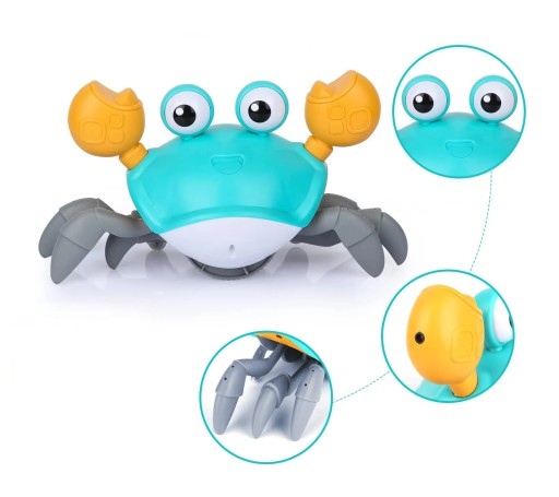 Zabawa z pełzającym krabem jest także wzbogacona o efekty świetlne i dźwiękowe.