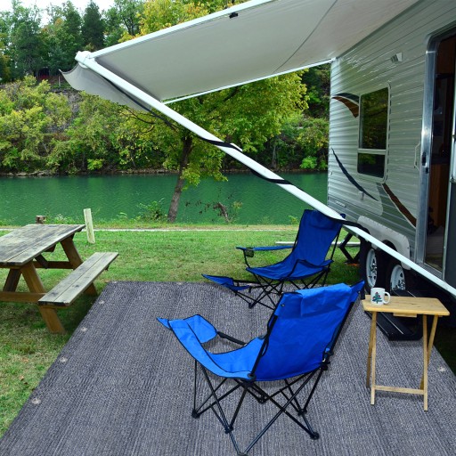 【Stylowa wykładzina markizy】 Wykładzina markizy ma wymiary 3 x 6 m i ma zagięte krawędzie oraz oczka. Akcesoria obejmują 19 kołków rozporowych.