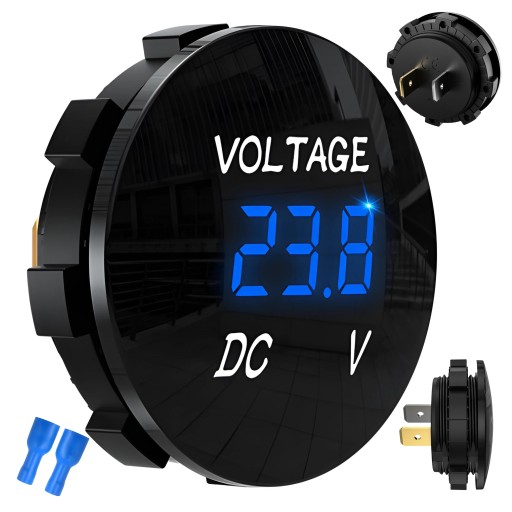 ⭐WOLTOMIERZ MIERNIK NAPIĘCIA CYFROWY LED GNIAZDOWY TESTER OKRĄGŁY 12V 24V⭐