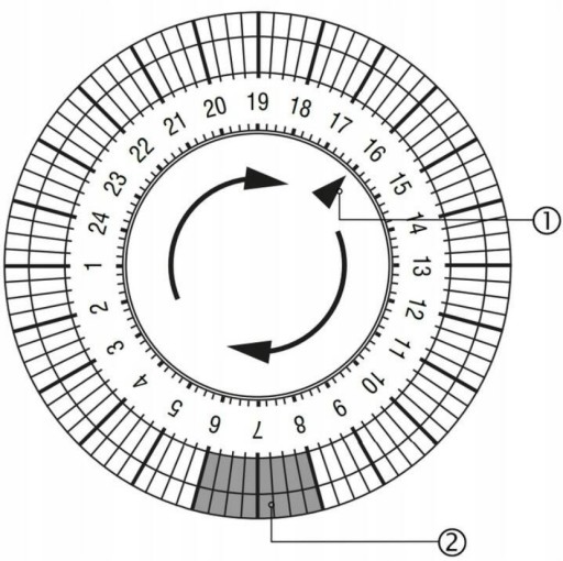 Następnie wybierz zakres godzin, w którym urządzenie ma być włączone, wciskając odpowiednią ilość zapadek (1 zapadka = 30 minut).