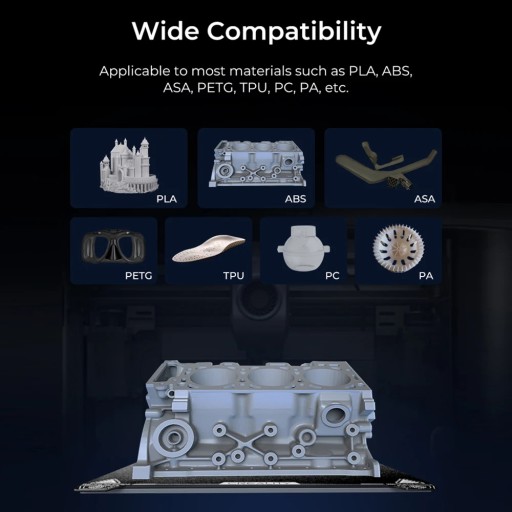Czarny teksturowany PEI ma wysoką przyczepność, aby zapobiec wypaczaniu się modelu podczas drukowania, zarówno w wysokich, jak i niskich temperaturach.