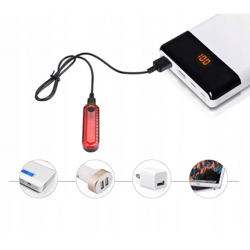 LAMPKA ROWEROWA LED TYLNA OŚWIETLENIE NA ROWER USB NA TYŁ ROWERA ŁADOWANA