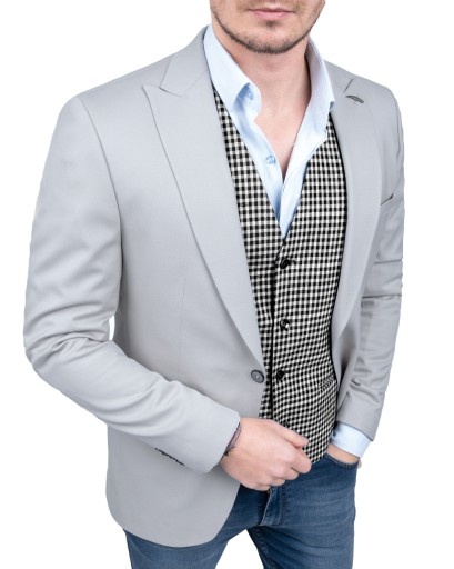 Мужской элегантный светло-серый приталенный форменный пиджак весна-лето - 52