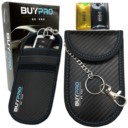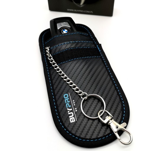 BuyPro Pokrowiec: wykonany jest z włókna węglowego, a wnętrze wykonane jest z wysokiej jakości tkaniny ekranującej. Bardzo wytrzymały i elegancki. Wymiary zostały dobrane tak aby każdy kluczyk samochodowy się zmieścił. Pokrowiec posiada dwie kieszenie jedna służy do blokowania sygnału, druga natomiast do odblokowania możesz przechowywać kluczyk w niej np podczas jazdy. Ponadto możesz przechowywać w pokrowcu dowód osobisty,prawo jazdy, karty płatnicze aby chronić je przed kradzieżą danych.