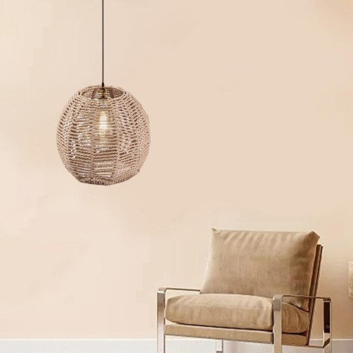 Wytrzymały materiał: klosz wiszący wykonany jest z liny papierowej i materiałów metalowych, jest ręcznie tkany, a oprawa oświetleniowa boho nie jest łatwa do odkształcenia